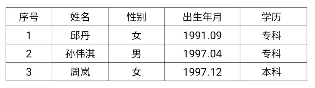 根據(jù)《關(guān)于為丹棱縣就業(yè)服務(wù)管理局公開招聘勞務(wù)派遣人員的公告》(以下簡稱《公告》)有關(guān)規(guī)定,現(xiàn)將通過報名、資格審核、面試的擬聘用人員予以公示。
