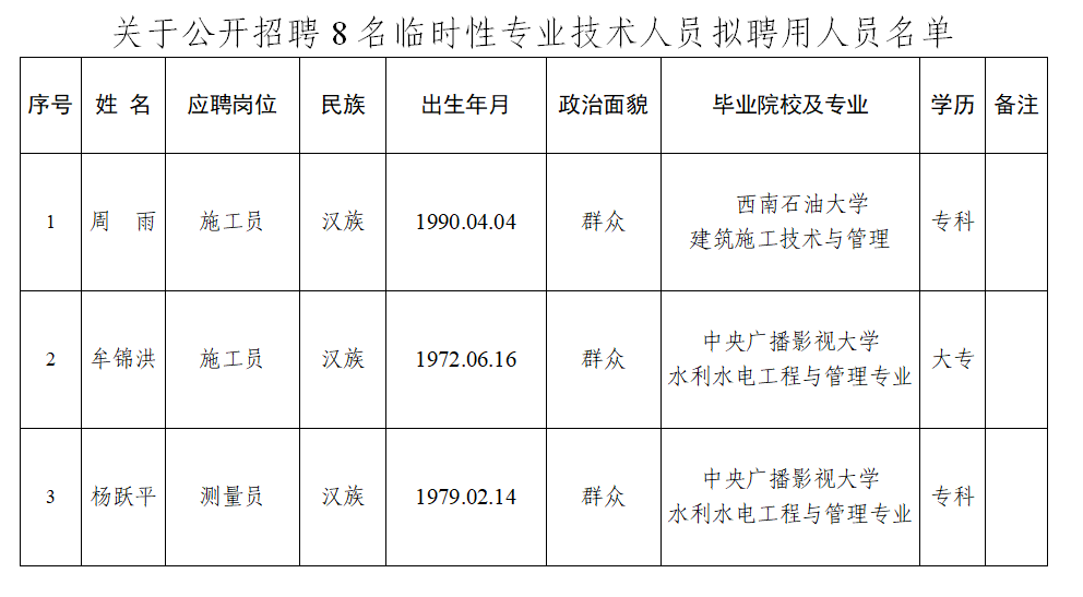附件:關(guān)于公開招聘8名臨時性專業(yè)技術(shù)人員擬聘用人員名單