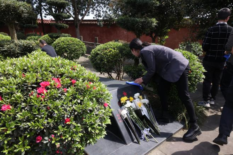 在莊嚴(yán)聳立的革命烈士紀(jì)念碑前,全體人員整齊列隊、神情肅穆,向革命先烈默哀致禮并敬獻(xiàn)鮮花。隨后,通過重溫入黨誓詞、擦拭烈士墓碑、學(xué)習(xí)先烈事跡等形式表達(dá)對英烈的深切緬懷和崇敬之情。